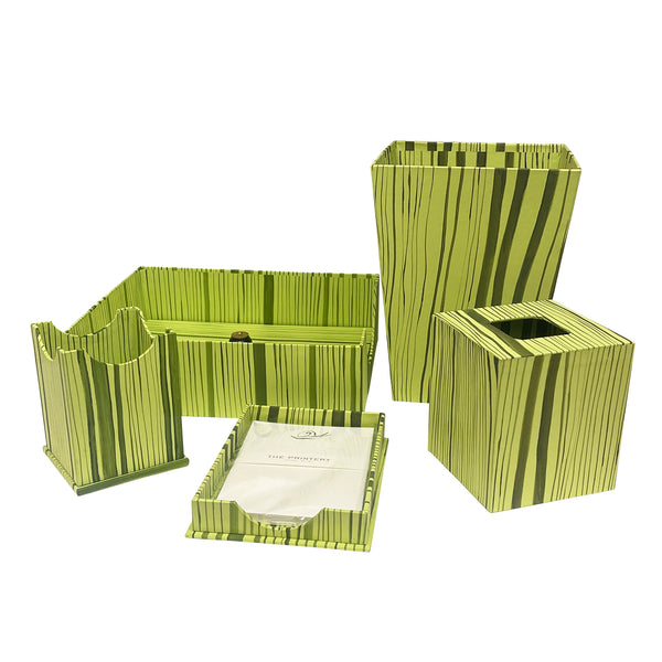 Hand-Painted Paper-Covered Accessories in Sludge on Chartreuse Faux Bois