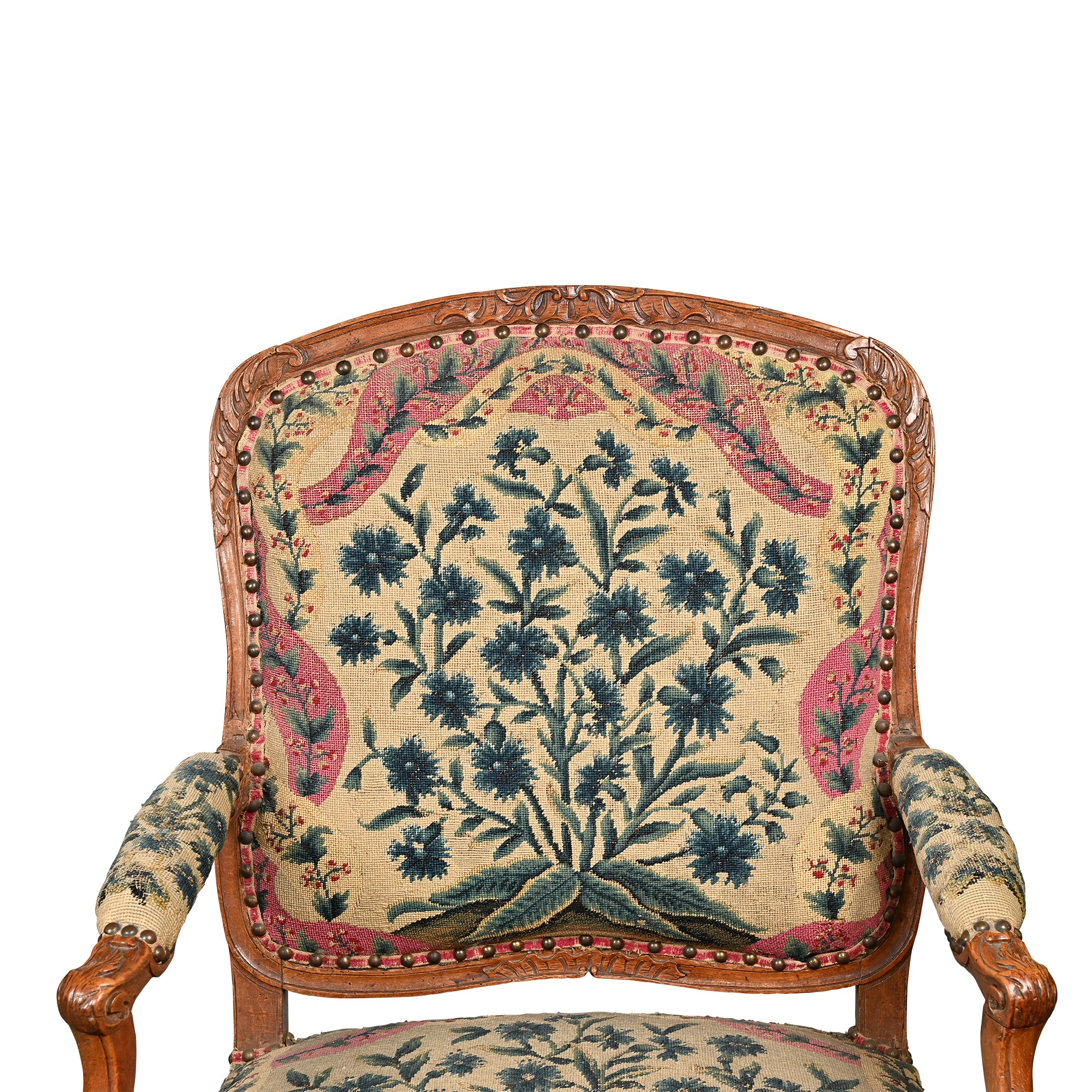 Louis XV Walnut Fauteuil with Original Needlepoint