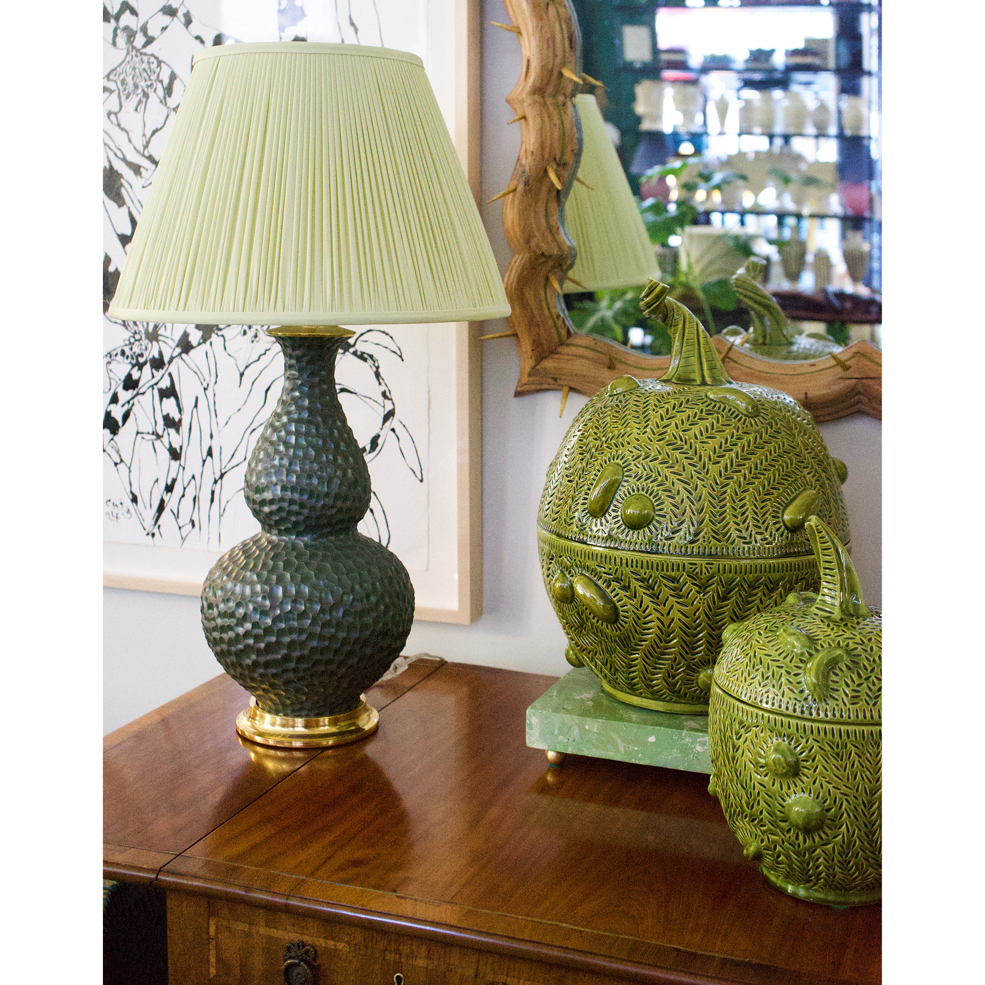 Christopher's iconic ceramic lamp designs draw inspiration from classical forms and traditional gemlike glazes. He lives in New York City where he creates his one of-a-kind vibrant lamps, tableware and other ceramic accessories with a crew of skilled artisans.