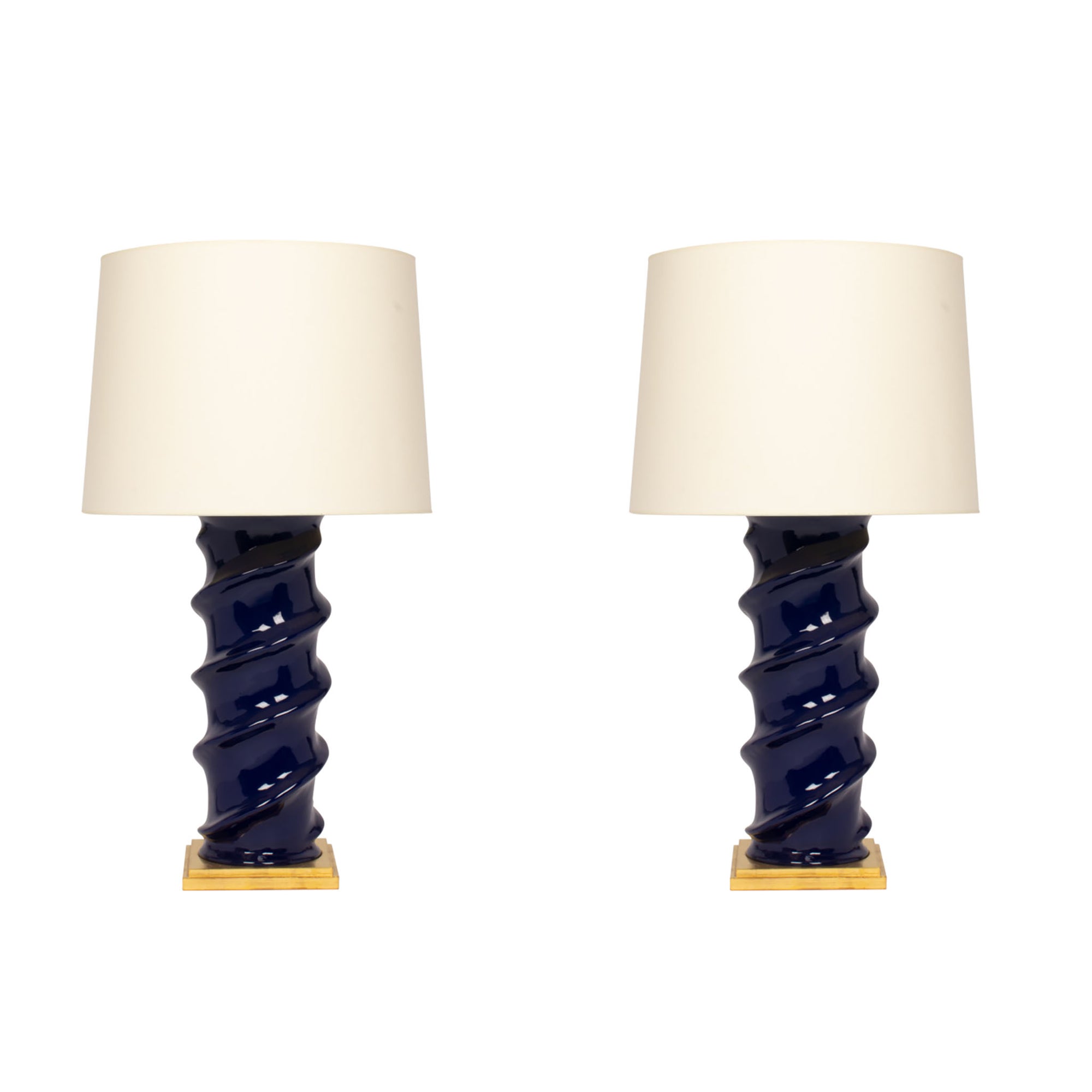 Pair of Amanda Lamps in Indigo with Gold Base