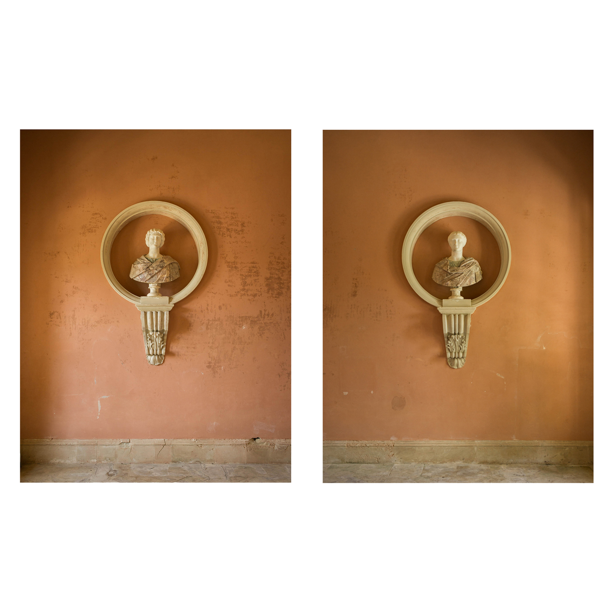 Stourhead I and II are photographs taken in the Temple of Flora at Stourhead in Wiltshire, England. The property has one of the first country villas to be built in the style of Palladio. The Temple of Flora was dedicated to the Roman goddess of flowers and spring and was the first garden building erected by Henry Hoare II c. 1744. Over the doorway the Latin inscription reads ‘Keep away, anyone profane, keep away’.