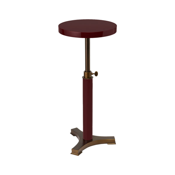 Handmade high gloss lacquer side table with bronze hardware and adjustable height.