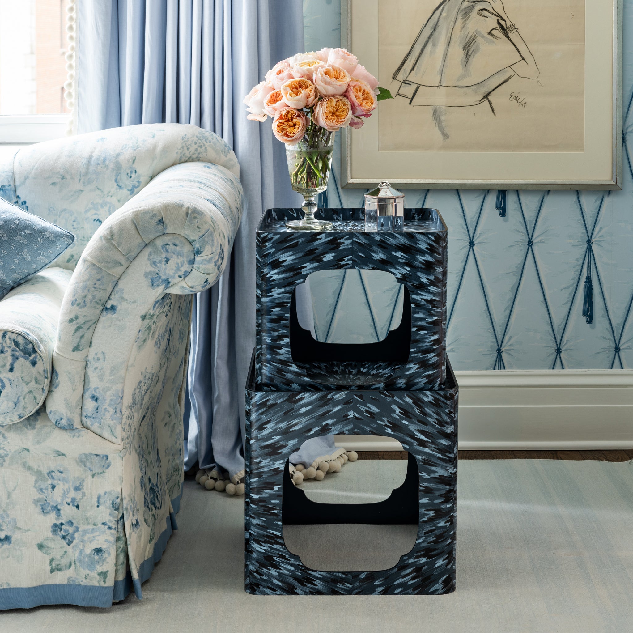 KRB Hand-Painted Cloud Stacking Table in Lapis Faux Tortoise
