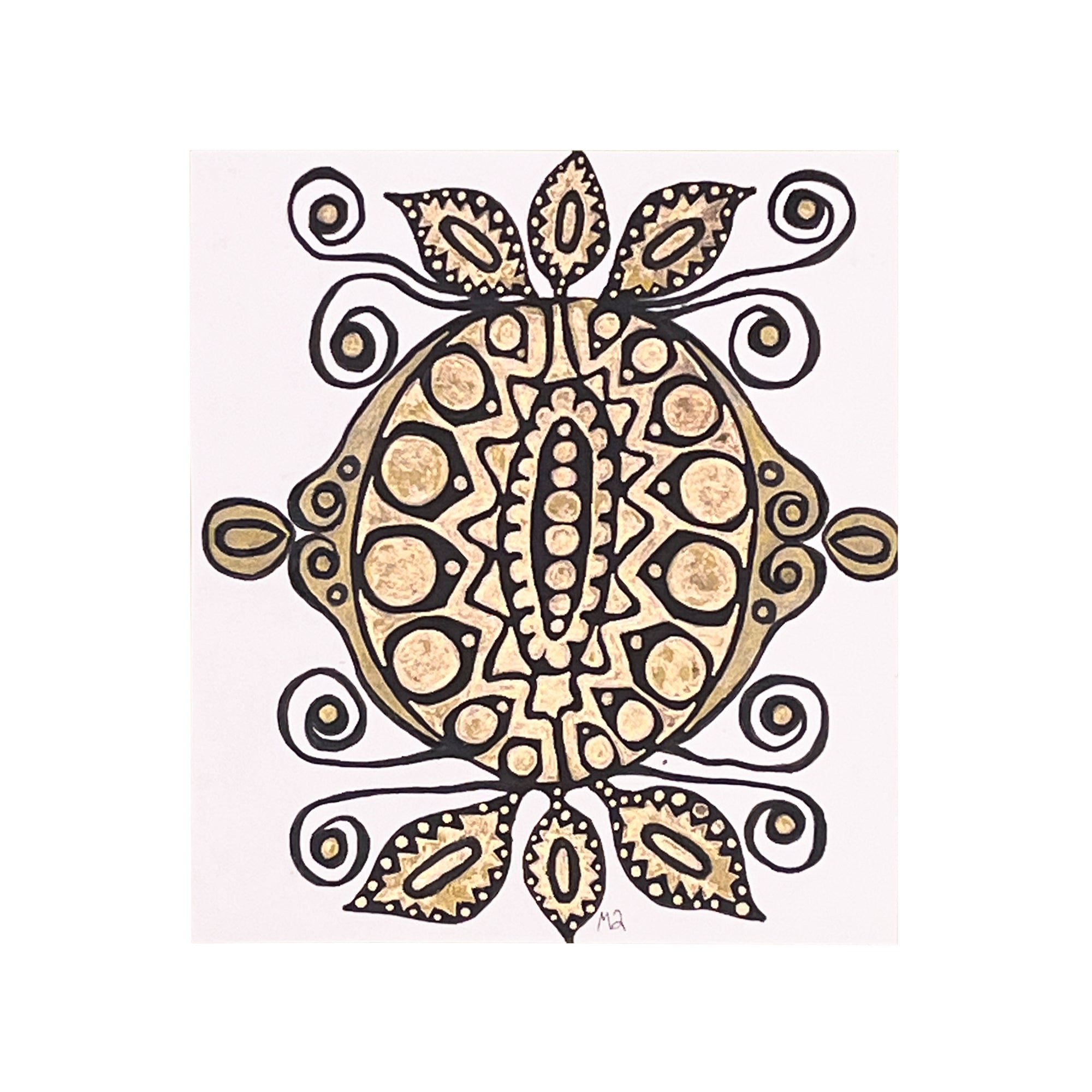 Unframed metallic ink drawing on paper.