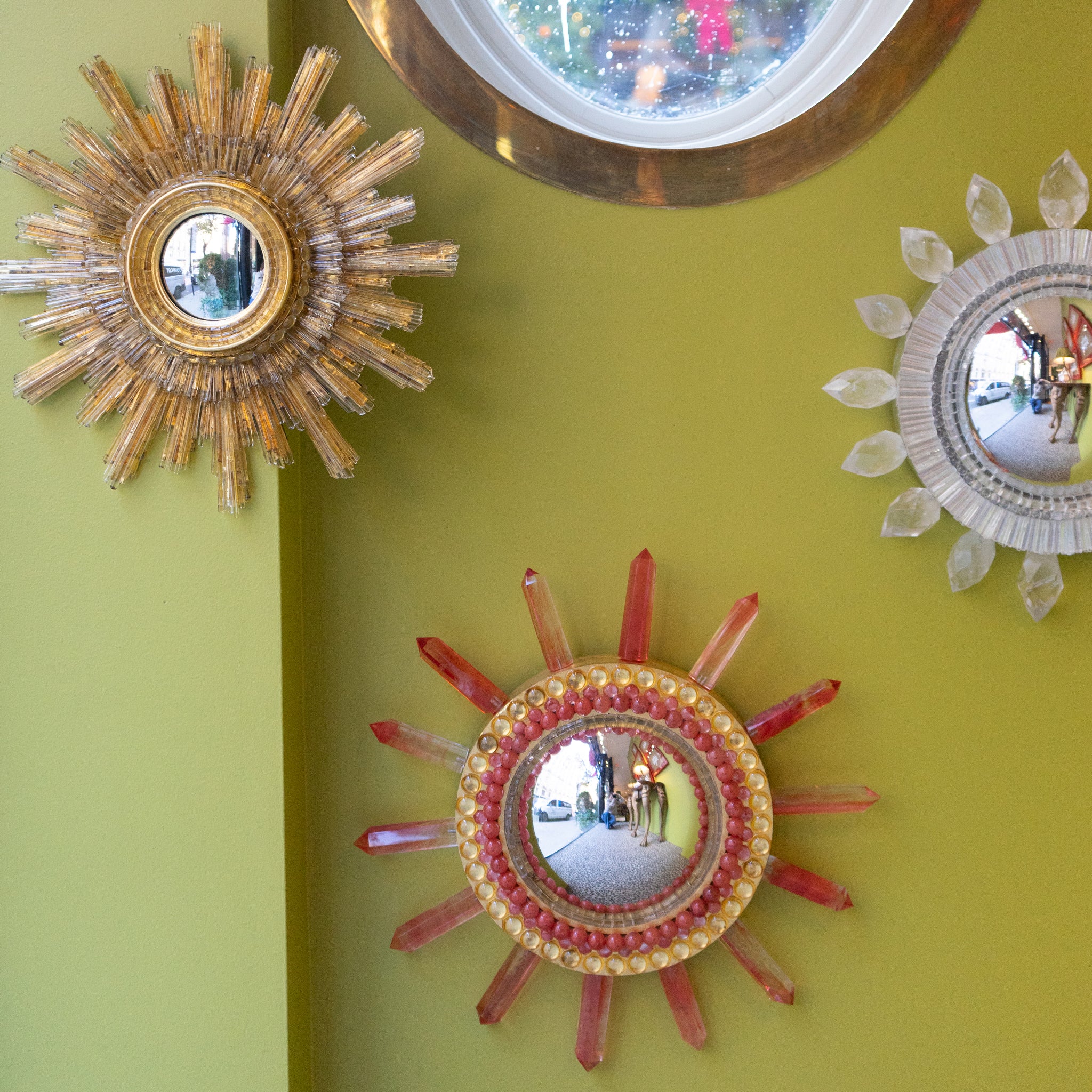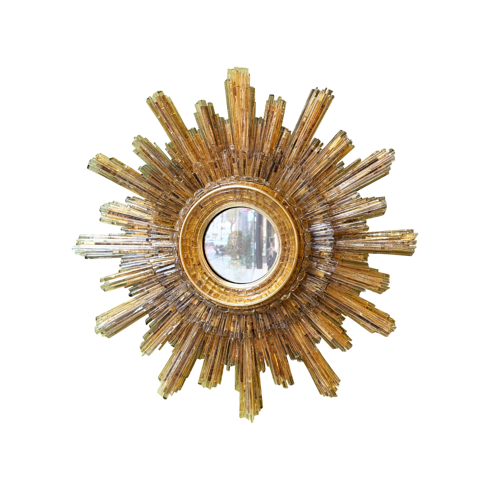 Stacked layers of Venetian glass rod in shades of wheat, pale yellow and gilded glass cabochons decorate the gilded frame.
