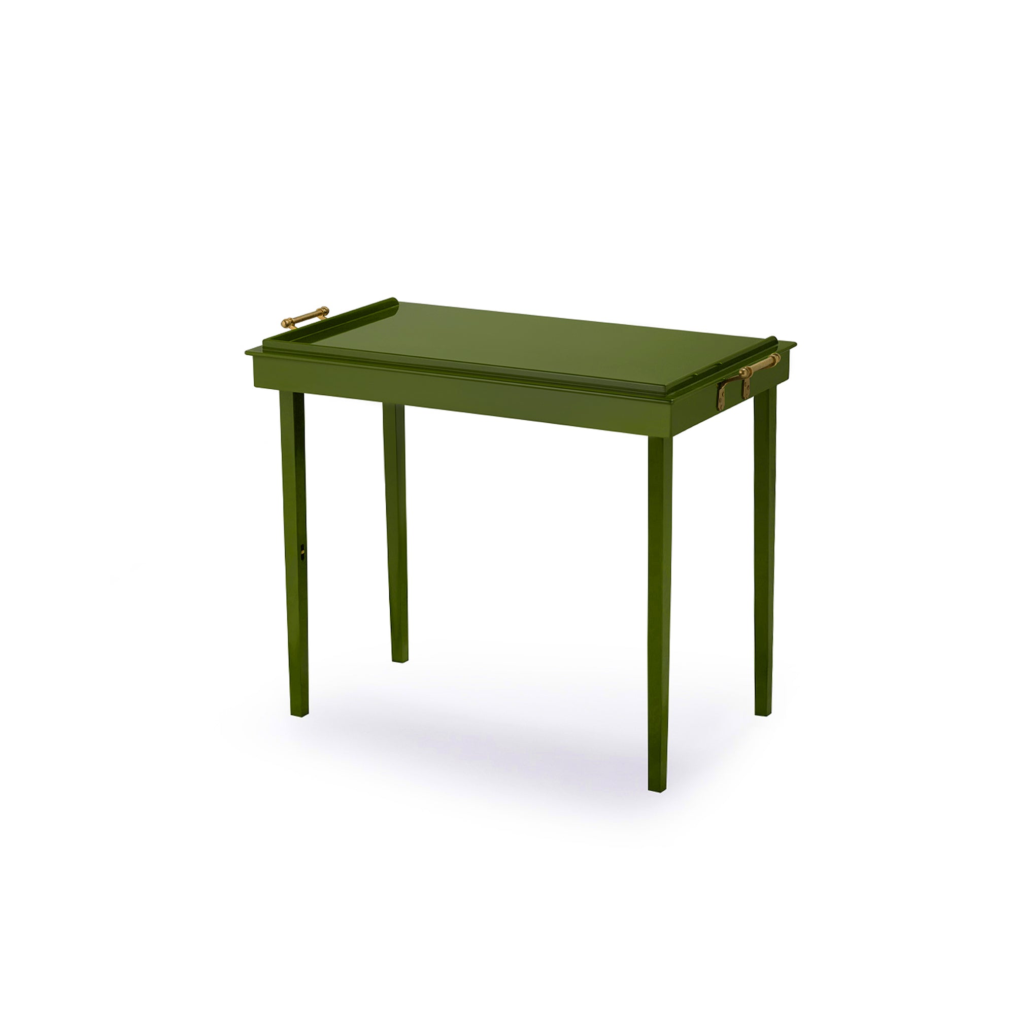 Handmade high gloss lacquer. Legs fold in for use as tray.