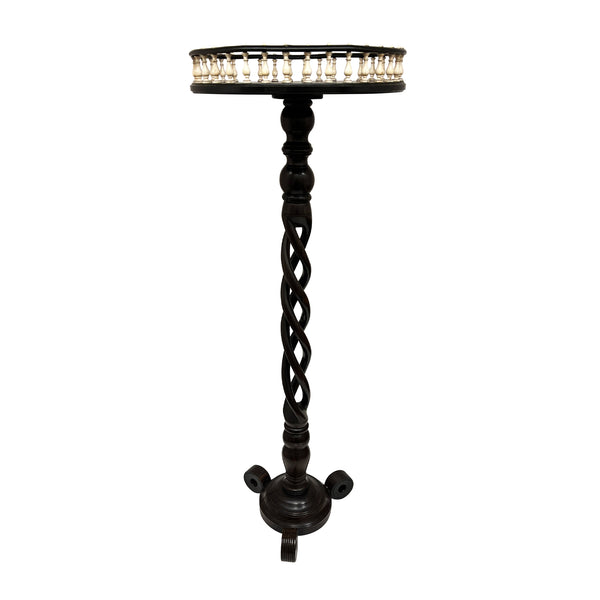 Unusual 19th Century Anglo Indian Ebony Stand with Turned Bone Gallery and Inlay c. 1840