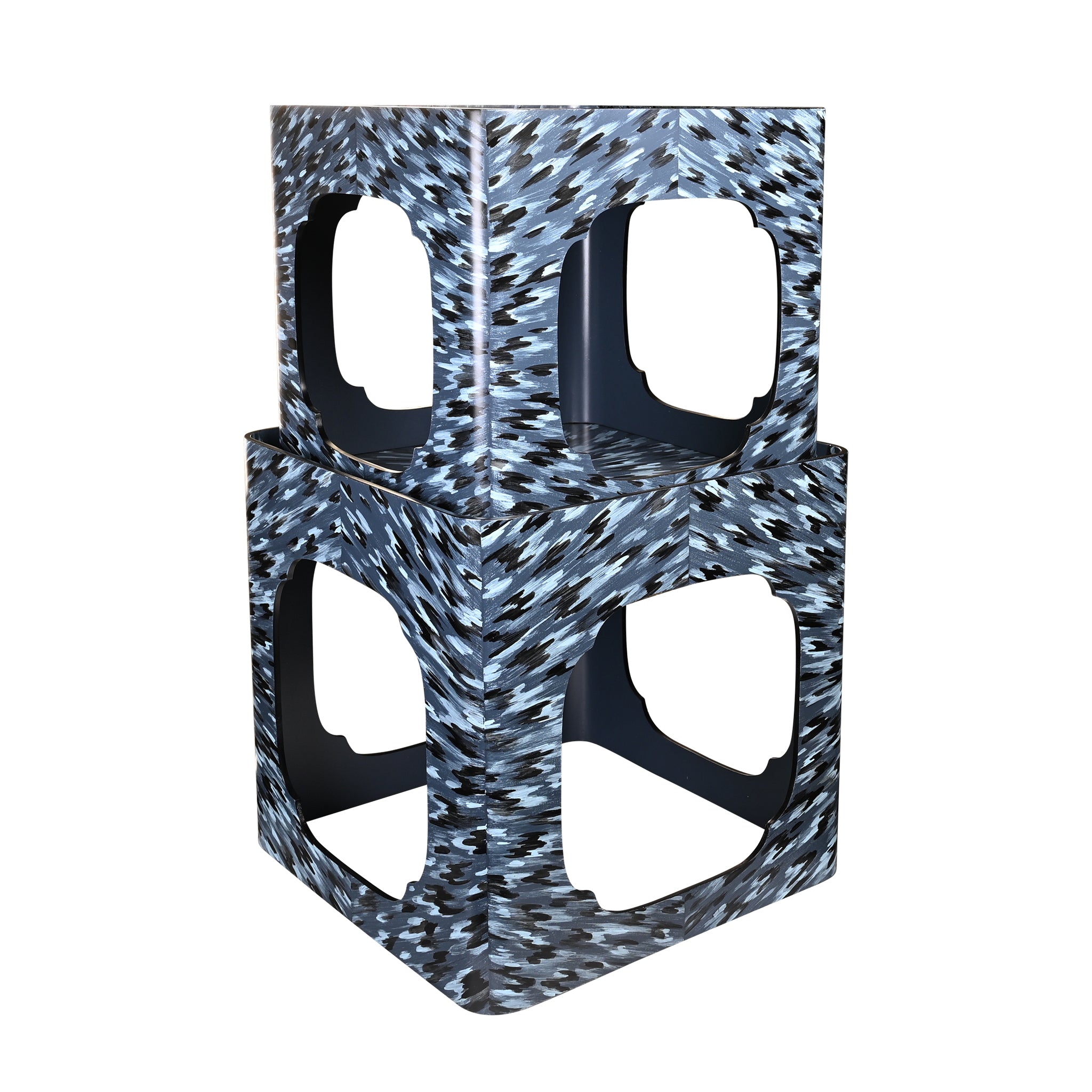 Hand-Painted Cloud Stacking Table in Lapis Blue