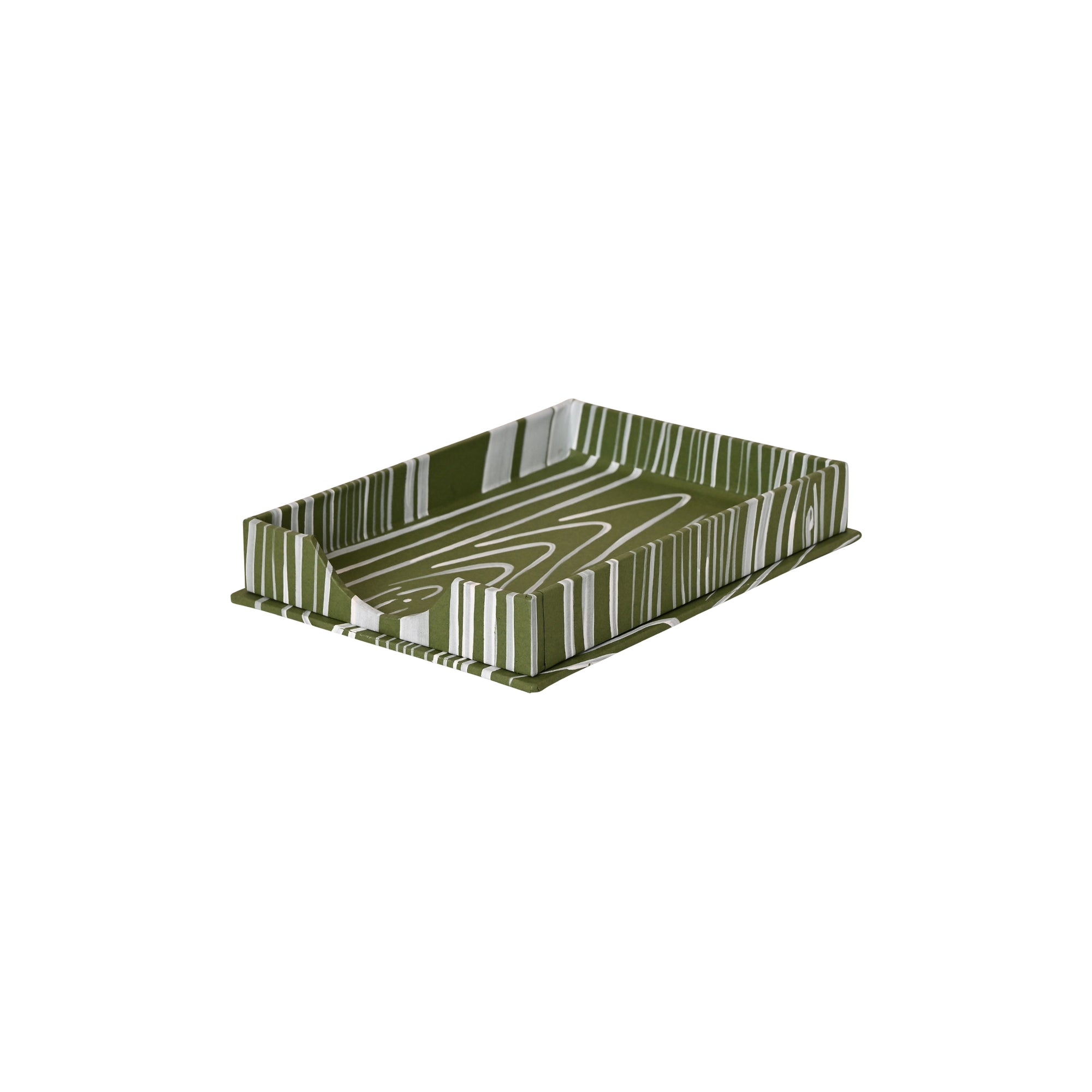 Hand-Painted Paper-Covered Accessories in Olive and White Faux Bois