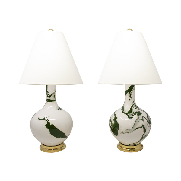 Pair of Lindsay Lamps in Dark Green Marble