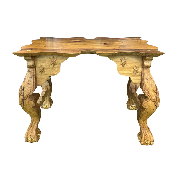 Made in Central Mexico from upcycled pine salvaged from structures, some as old as three hundred years, Diaz's rustic heirlooms are hand-carved and hand-painted, leaving the natural attributes of the wood grain intact. Sustainably finished with natural beeswax and linseed oil stains, his work has an organic veneer, with a narrative that crosses temporal boundaries.