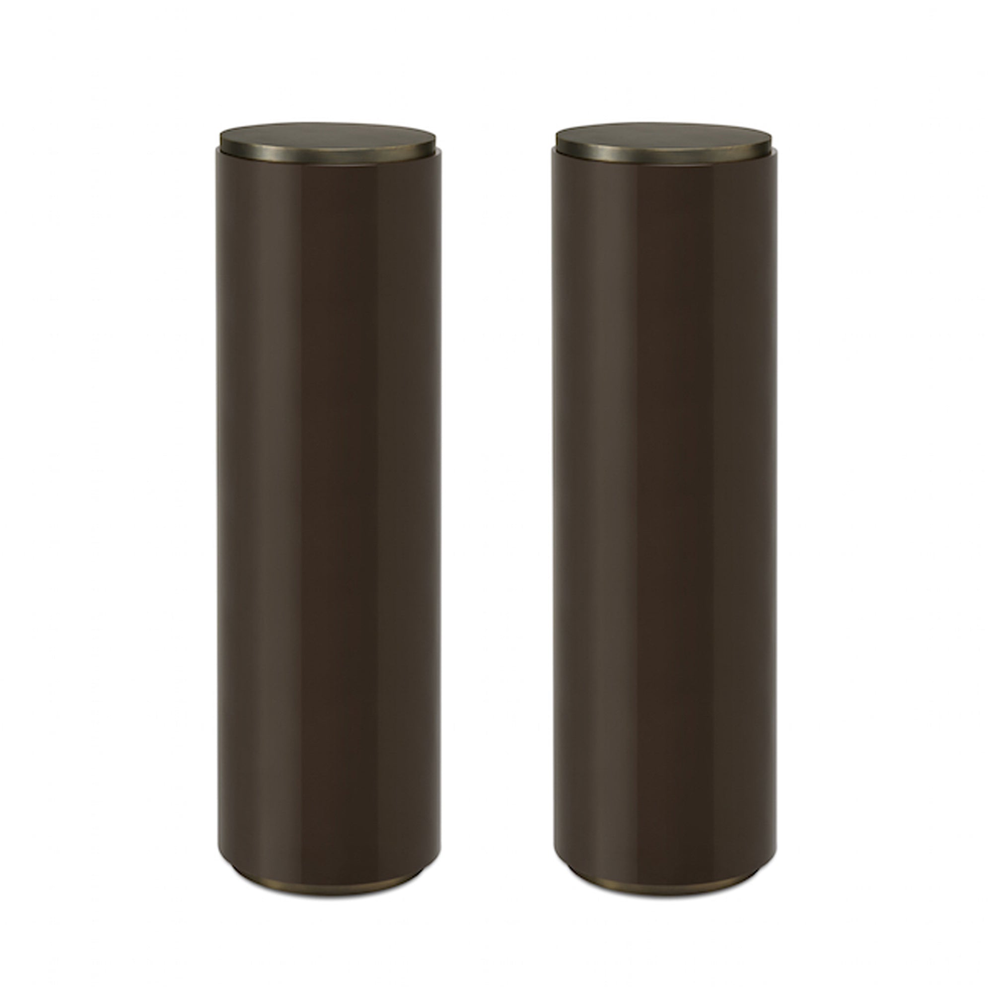 Handmade high gloss lacquer pedestal with bronze base and top.