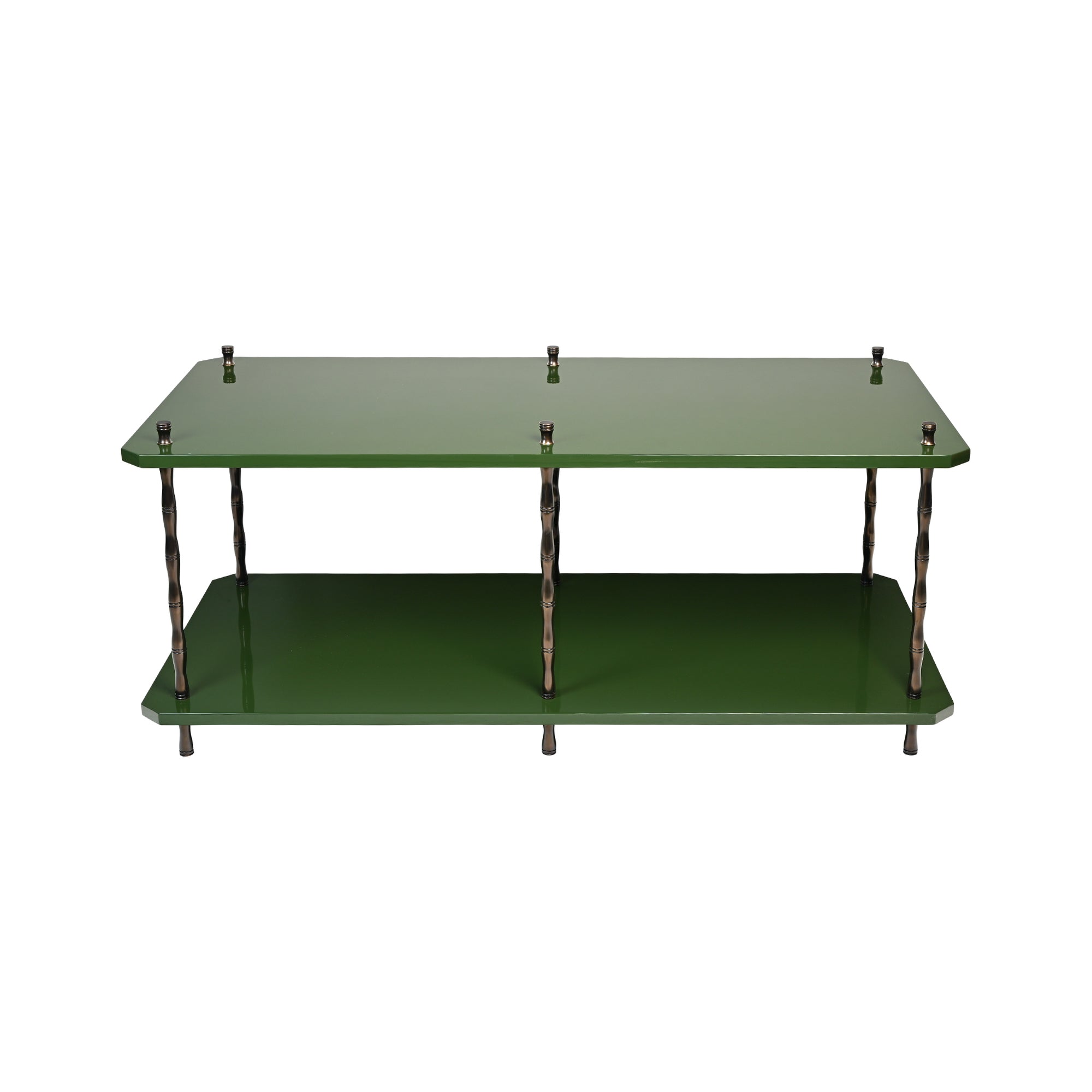 Handmade high gloss lacquer coffee table with brass legs.