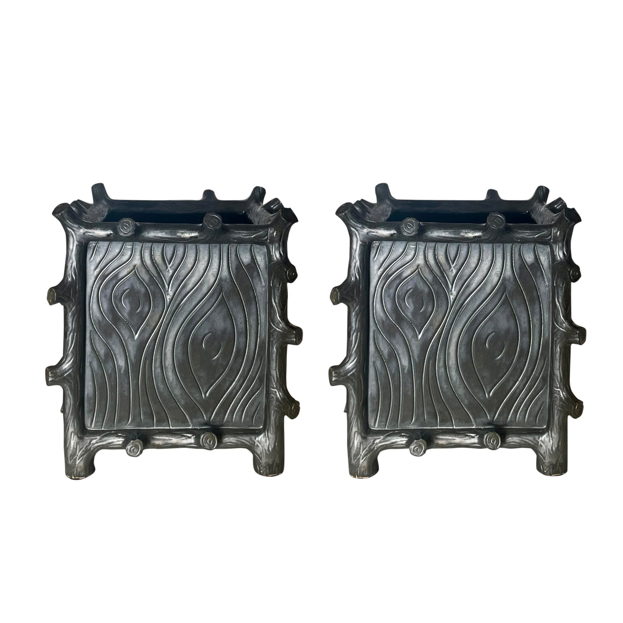 Large Square Faux Bois Cachepot in Matte Bronze